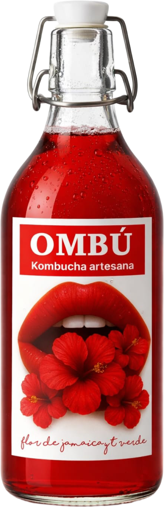 «Ombú» Un nombre nacido del amor, un sabor que nutre la vida. Kombucha de flor de jamaica, artesanal y natural, hecho con pasión por una familia feliz.